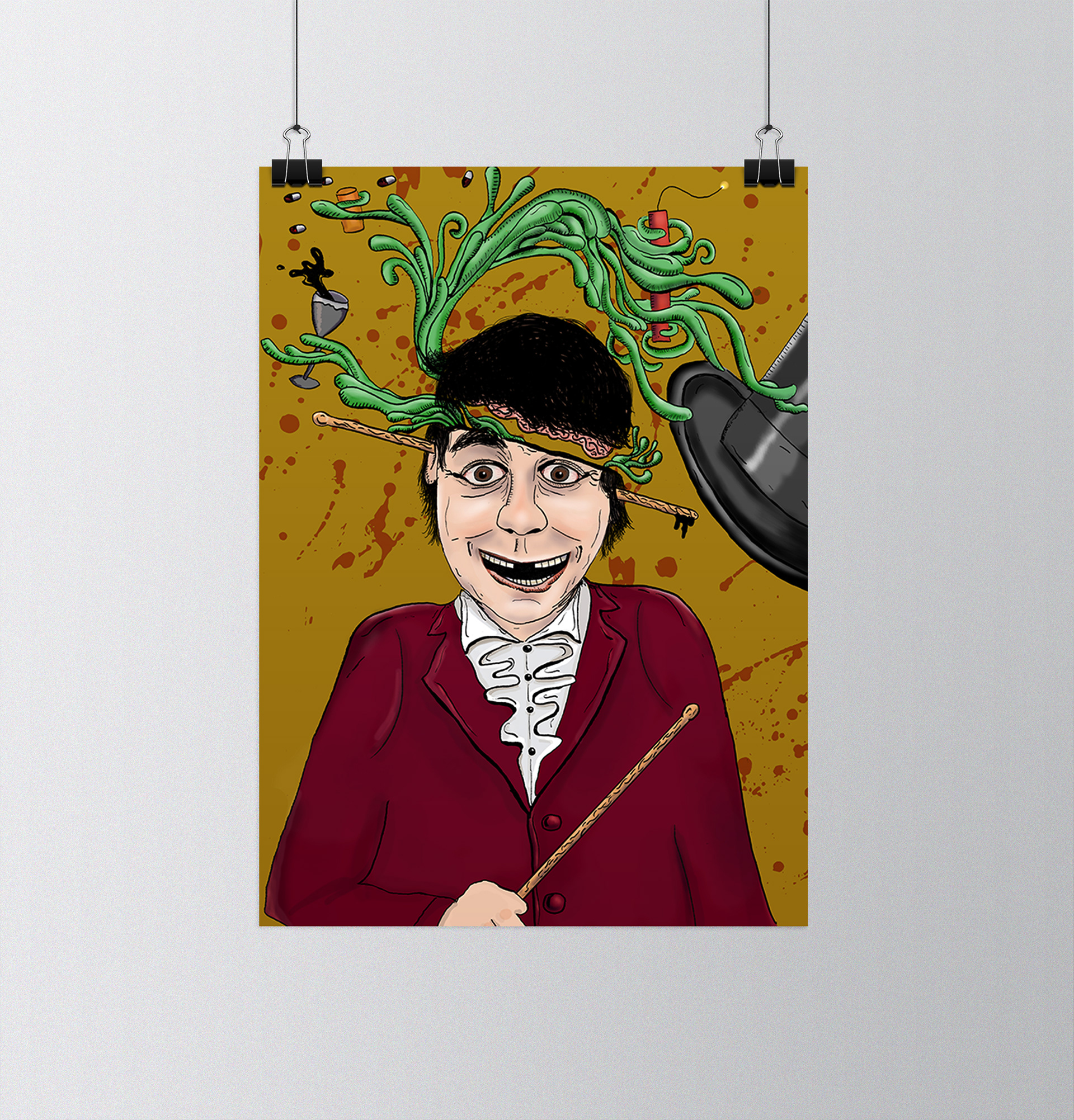 A digital portrait of the late great Keith Moon. (ink, scanned, color in photoshop)
